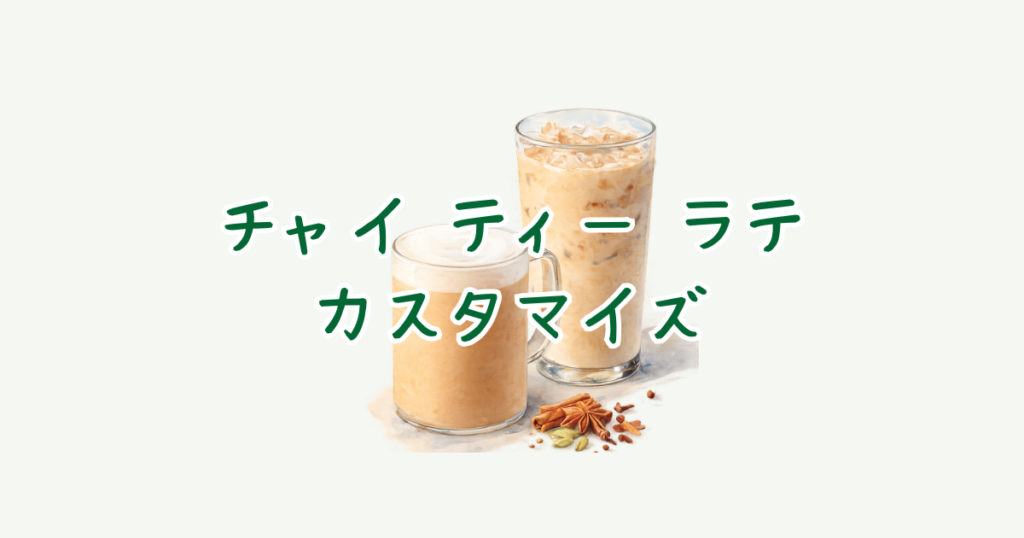 ベース:チャイティーラテ ※ホット推奨 カスタマイズ 合計料金 本体+0円 合計カロリー 推定+約30kcal ホットの場合 サイズカスタムなしカロリー目安カスタム後目安ショート約149 kcal約180 kcalトール約220 kcal約250 kcalグランデ約291 kcal約320 kcalベ...